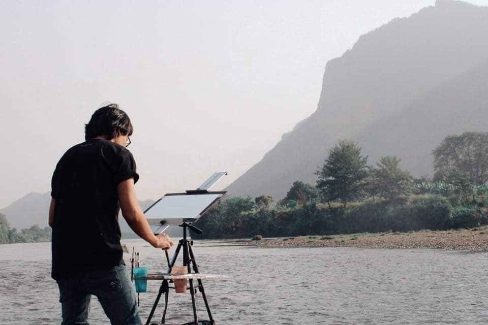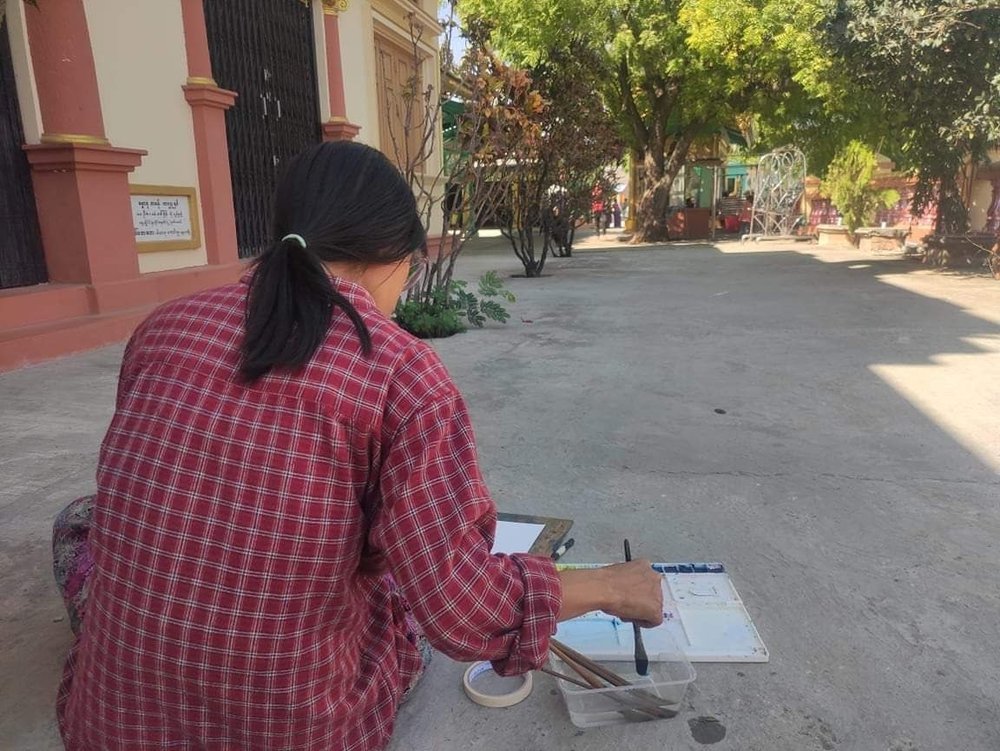 We are so thrilled to be on the verge of unveiling the spectacular paintings that have been submitted to our Art Against Tyranny auction, with all proceeds going towards humanitarian missions in Myanmar. But before releasing the actual art work, let’s take a moment to appreciate the courageous painters behind the pieces. This New York City gallery will be displaying pieces that were made by artists in hiding from the murderous military regime that has illegally seized power. The story of how we managed to get this art out is incredible enough, however for now, the focus should remain on those artists who executed the work— as seen in these two incredible photos.