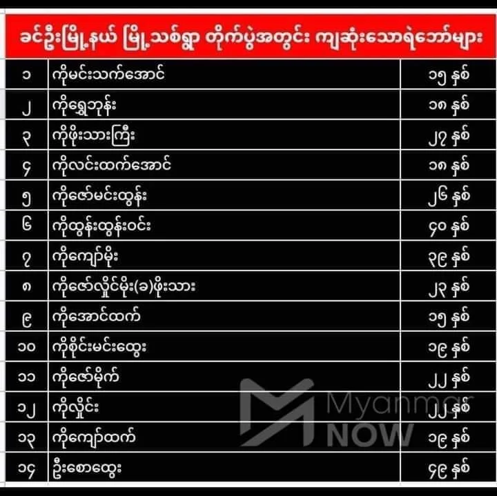 Several families have been detained under suspicion of giving donation to CDM employees, and over a dozen youths have been gunned down in broad daylight (refer to the table below for the names of the fallen, prepared by Myanmar Now). The following image shows two young boys from Khin U trying to escape into the fields, killed in stride as they were still holding hands.